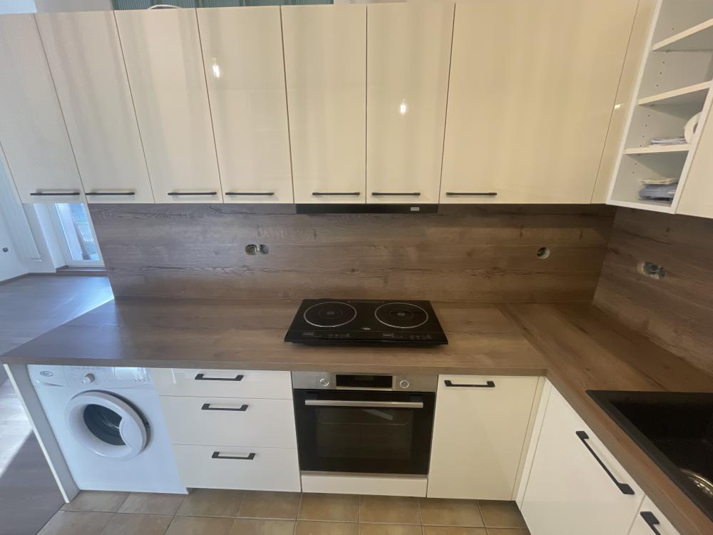 Součástí bytu je nová kuchyňská linka a v chodbě se nachází nová prostorná vestavná skříň.