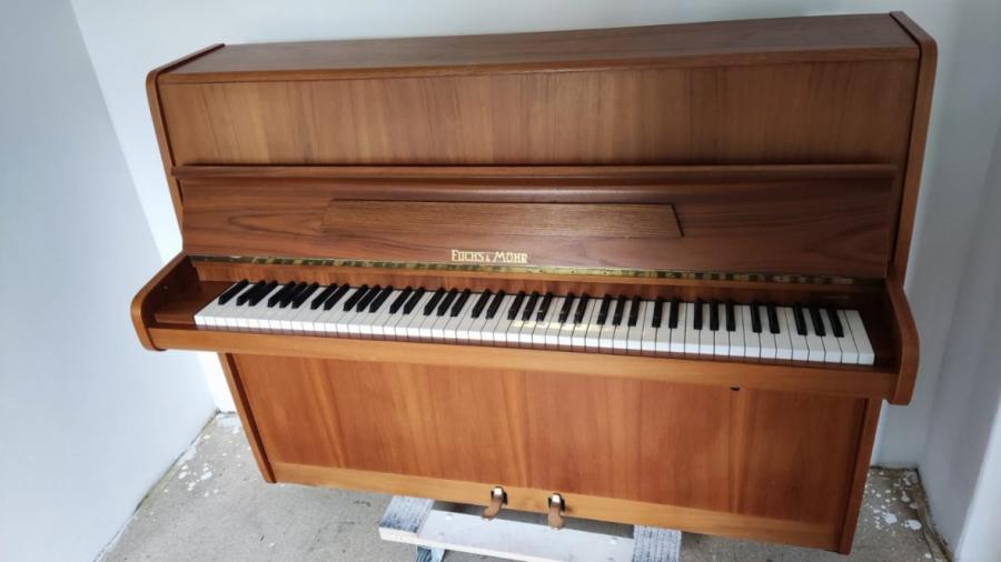 Zánovní pianino Fuchs & Moher německé výroby, Model 110 cm, světlý ořech. Pianino je určeno pro začátečníka, ale i pro pokročilého hráče. Málo používané, mechanika a klávesnice, jako nové. Výborný zvuk i dynamika klávesnice. Odborné stěhování a dovoz, zajistím. 25.000 Kč.