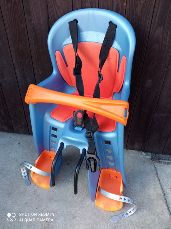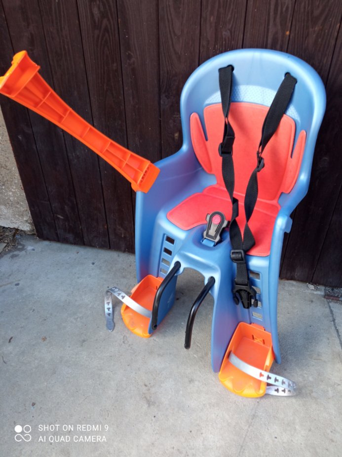 Dětskou cyklosedačku na kolo k upnutí k rámu pod řídítka. Sedačka je skoro jako nová, syn v ní seděl 2*. K sedačce náleží i upínák k rámu kola. Ten je také možno kdekoli dokoupit i zvlášť. 1000 Kč.