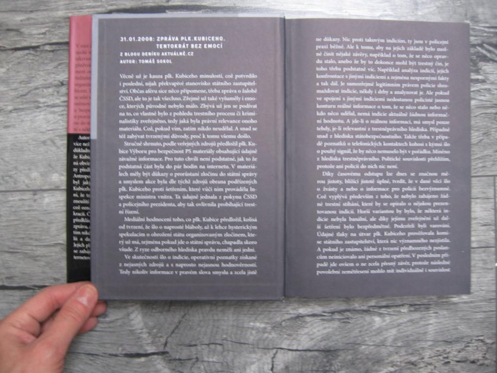 Nabízím zajímavou knihu "Krach temného pozadí Kubiceho aféry" od Pavla Blažka. Autor zaměřuje pozornost na souvislosti vyvolané tzv. Kubiceho aférou v květnu 2006. Po rozboru dokumentů dospívá k závěru, že Kubice jako ředitel ÚOOZ neprokázal svá obvinění z průniku organizovaného zločinu do orgánů státu. Podezřívá Kubiceho z účelových kroků s cílem ovlivnit volební výsledky. Kniha nová, nikdy nečtená, pevná vazba s papírovým přebalem, Jota, 2009, I. vyd., 343 str. Cena: 149 Kč.