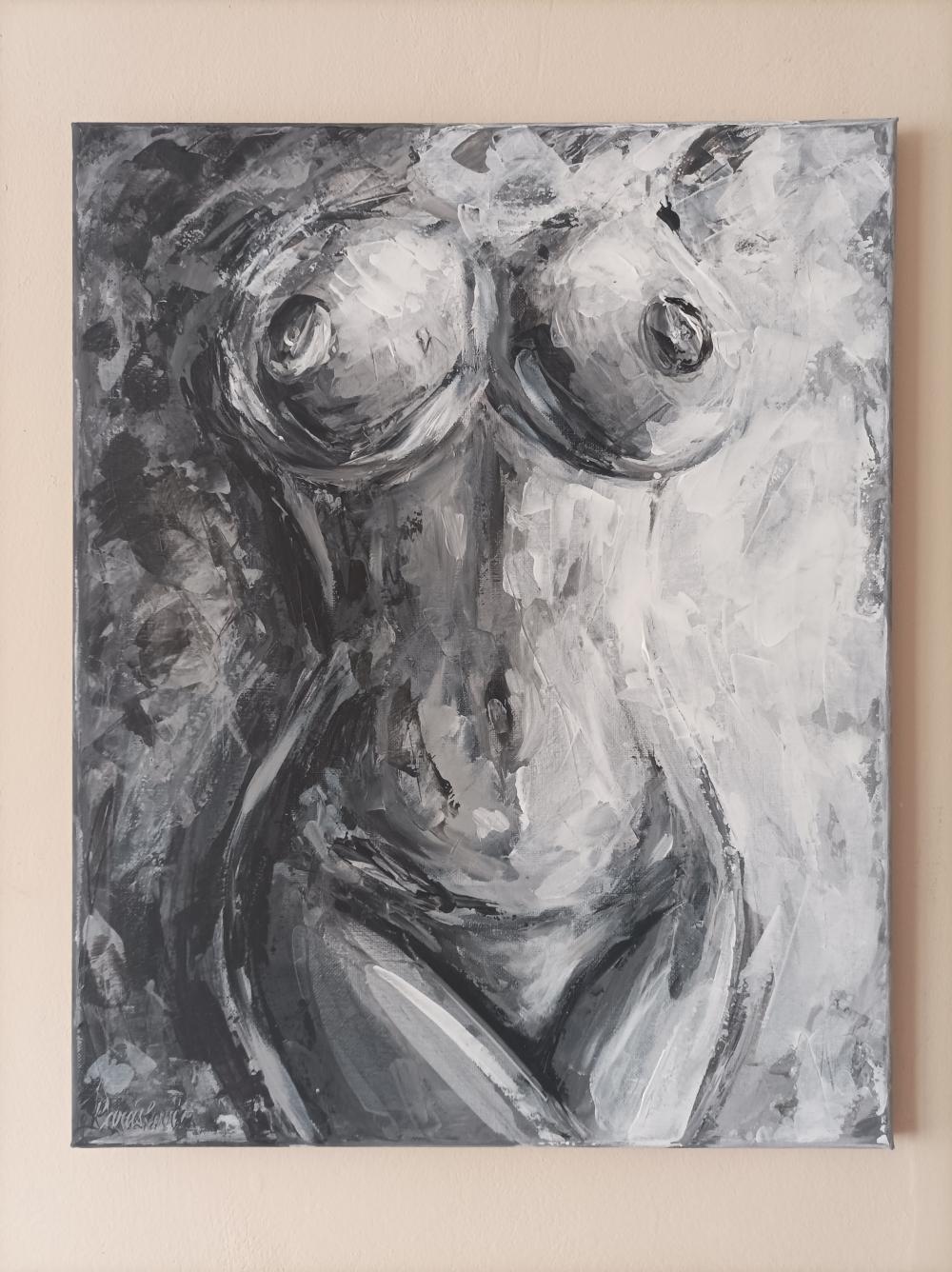 Ručně malovaný obraz -original, akryl na plátně, 40x50, akt, abstrakce. Doprava zdarma. Přes webové stránky a kurýra NEPOSÍLÁM.