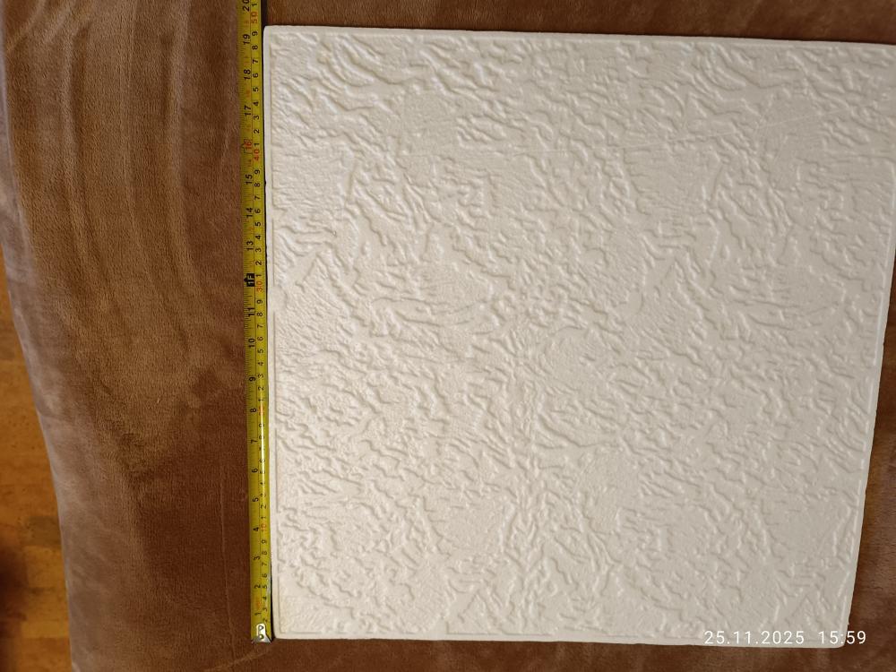 Prodám cca. 60 ks POLYSTYRENOVÝCH KAZET (desek) – STROPNICE NA OBKLAD STĚN / STROPU. Bílé s plastickým reliéfem (zadní strana je hladká) 50 x 50 x 0,5 cm. Dekorativní obklady stěn a stropu místnosti interiéru s účinkem snížení akustického hluku, snižují tepel. ztráty a vyrovnávají nerovnosti povrchů stěn. Z pěnového polystyrenu. Lze dodatečně přetřít emulzní barvou bez obsahu rozpouštědel. 4 ks na 1m2, cena m2 20,-Kč / tj. 15 m2 za 300,-Kč Nejlépe osobní odběr Plzeň.