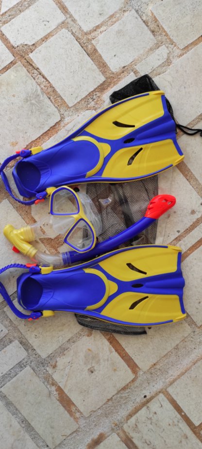Dětskou 3dílnou sadu na šnorchlování - ploutve, šnorchl, brýle. Velikost ploutví EU 32-37. Minimálně používané, jako nové. Cena 300 Kč.