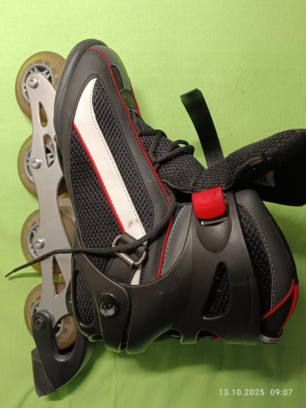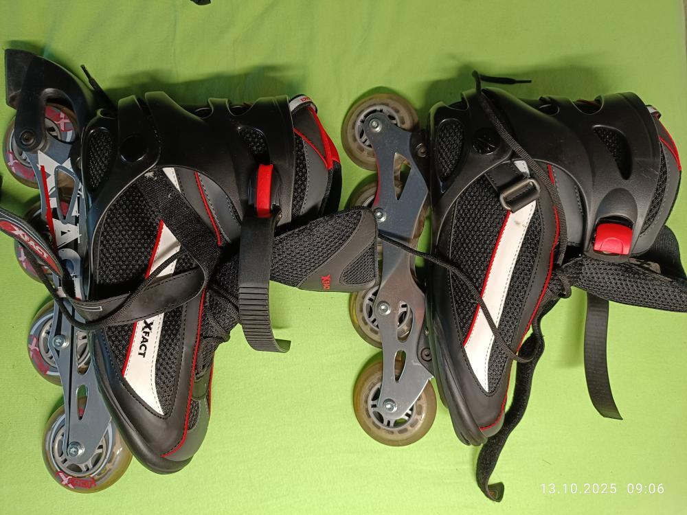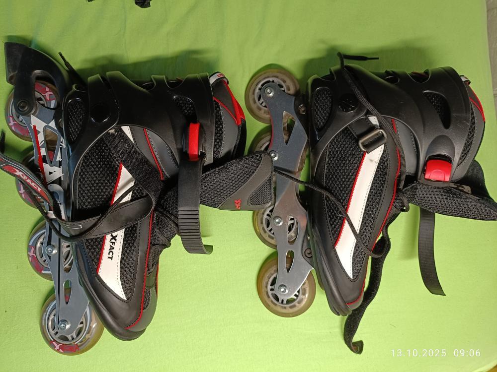 Prodám PÁNSKÉ KOLEČKOVÉ BRUSLE, INLINE, vel. 45, XFACT, 2x použité – nevhodný dar. Dominantní barva černá s bílými a červenými pruhy Plně funkční, ve výtečném stavu.. Lze i s SOUPRAVOU 6 ks CHRÁNIĆU kolen loktů a dlaní - hlavně černá Worker EXtreme. Velmi dobrý stav. Cena za vše. Plzeň.