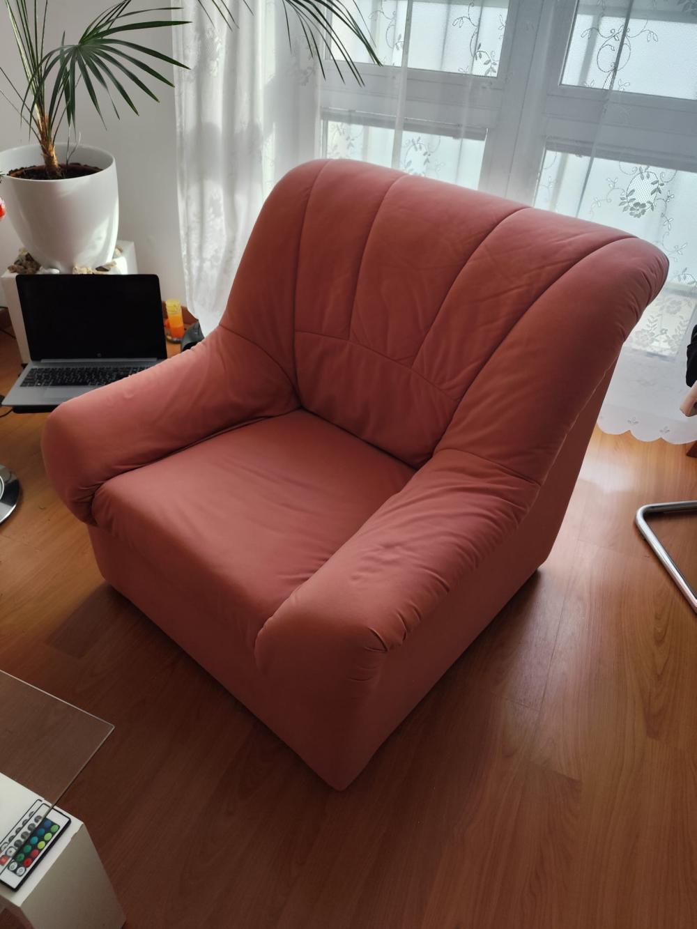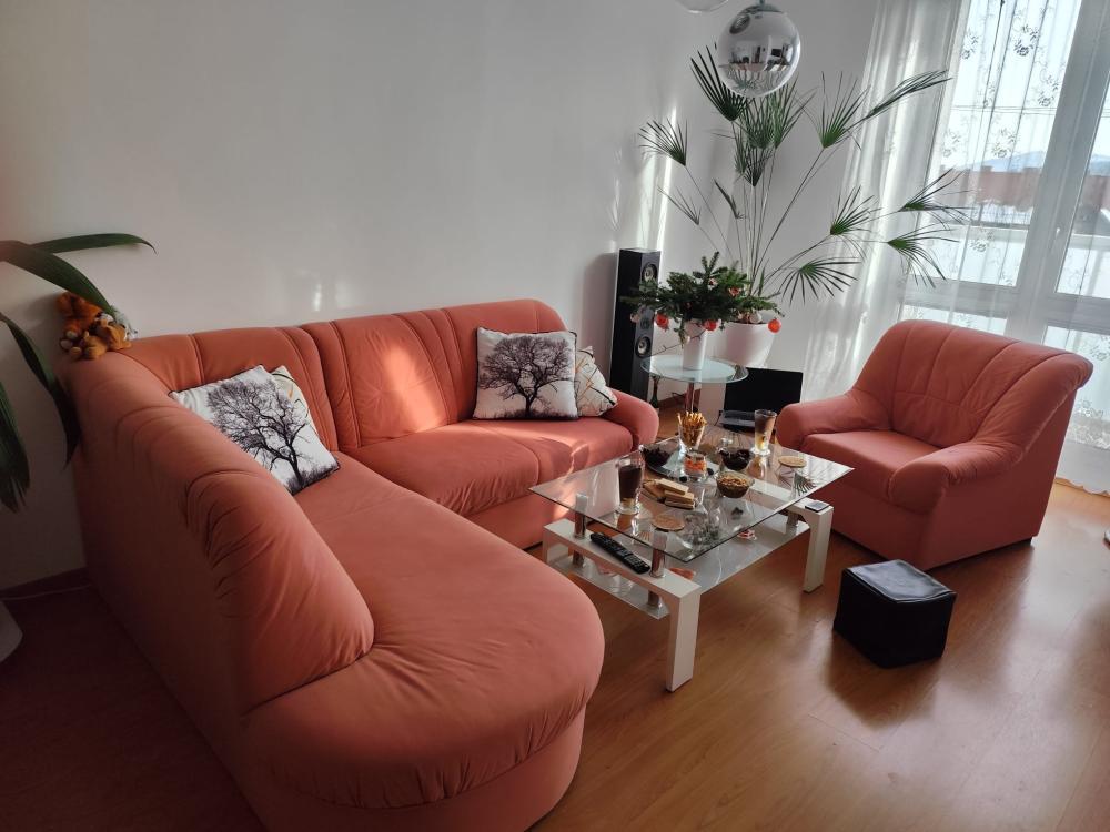 Prodám sedací soupravu s křeslem - velmi zachovalá,vhodná do menších prostor nebo na chatu. Není rozkládací. Barva- oranžový lotos. Křeslo (v-š-h) 80x80x80, sedák 50x45, opěrka nad sedákem v - 60. Sedací souprava do tvaru L - délka - 2 m x 170, výška 80, hloubka - 80, hloubka sedu - 50, výška opěrek - 60. Křeslo za 3500,- Kč. Rohová sedací souprava - za 11500,- Kč. Nutno zajistit vlastní odvoz. Zájemci kontaktujte mne přes whatsup na č. 702850548.