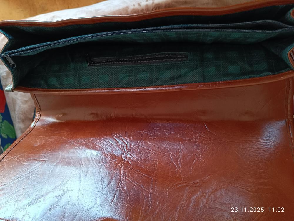 Prodám UNISEX HNĚDOU AKTOVKU, skoro nepoužívaná. Hlavní část těla aktovky má chlopeň která se zavírá na otočné kolečko, 2 okrasné zapínací přezky. Uvnitř jsou dvě oddělené velké kapsy, uprostřed jedna zavíraná na zip (min. formát papír A4 ) další vložená kapsa na čelní části zapínaná na zip. Aktovka má držátko na nošení a velký popruh umožňující nošení i přes rameno. 41 x 31 cm, Šíře aktovky cca. 6 cm, rozšiřitelná na 10 cm. Uvnitř aktovky jsou přihrádky zapínané na zip pro drobnosti. Nejlépe osobní odběr Plzeň